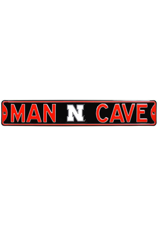 This Nebraska Cornhuskers 6x36 Man Cave Street Sign is great for decorating your home Cornhuskers team spirit. Take your team spirit to the next level with this Sign, which features a red metal sign with Man Cave and team logo. Go Huskers!