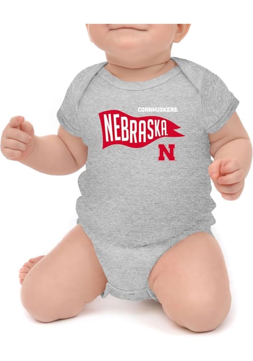 Your little Cornhuskers fan will look adorable in this Baby Grey Nebraska Cornhuskers Knobby Retro One Piece! This Nebraska Cornhuskers Romper features a screen print team graphic.