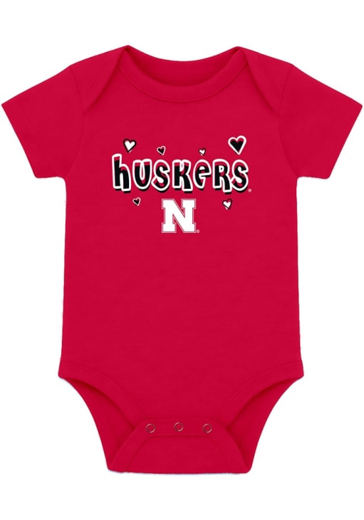 Your little Cornhuskers fan will look adorable in this Baby Red Nebraska Cornhuskers Hearts One Piece! This Nebraska Cornhuskers Romper features a screen print team graphic.