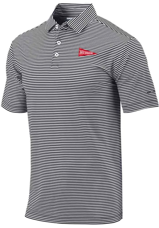 Mens Nebraska Cornhuskers Black Columbia Vault Heat Seal Omni Wick Club Invite Short Sleeve Polo S..