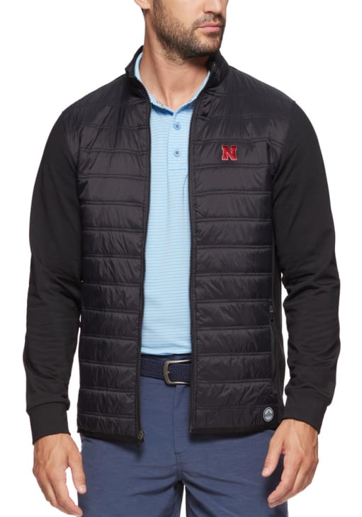 Product Details Product Details Two zipper hand pocketsClassic stand collarBuilt-in stretchQuick-dryMoisture wicking and UPF sun protection100% NYLON SHELL & LINING / 100% POLYESTER FILLINGMachine wash cold, tumble dry low Officially Licensed This Black Nebraska Cornhuskers Medium Weight Jacket is a great way to show pride in Cornhuskers on a chilly gameday. Stay warm for the next Nebraska Cornhuskers tailgate in this Medium Weight Jacket which features a team graphic on left sleeve.