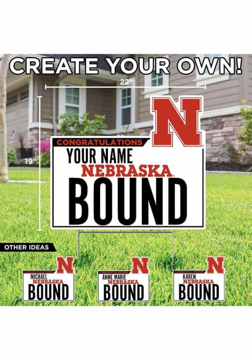 Product Details Product Details First Name ONLY.Approximatley 19"x22"Cut to Shape Weatherproof PlasticMetal Stakes IncludedFull Color PrintCustomized Bound Sign with your name! Officially Licensed Nebraska Cornhuskers Personalized School Bound Yard Sign will let everyone know you root for the Cornhuskers proudly. This Yard Sign features a weather resistant material.