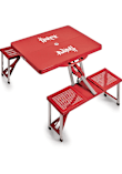 Product Details Product Details Portable seating for fourMaximum weight capacity is 250 lbs. per seat and 20 lbs. for the tableSturdy ABS plastic tableMolded polypropylene seats with a basket weave designIntegrated table in a folding compact Officially Licensed Showcase the Cornhuskers style at your next tailgate with this Nebraska Cornhuskers Portable Picnic Table. This Table features a team logo.