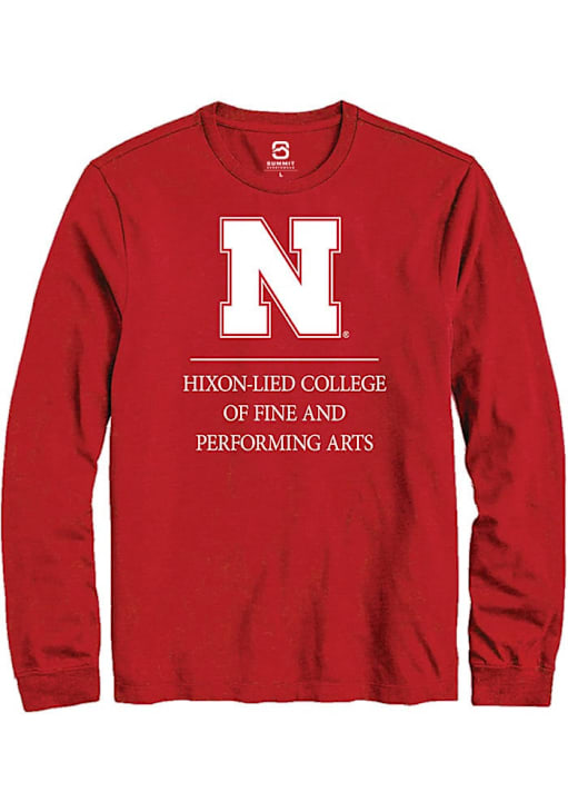 Show your Nebraska Cornhuskers spirit in this Nebraska Red T Shirt! This Nebraska Hixon-Lied College of Fine and Performing Arts Long Sleeve T Shirt makes a great layer for cooler nights cheering on the Cornhuskers. Featuring a digitally printed graphic, this Nebraska Cornhuskers Long Sleeve Tee is an essential addition for every fan. Go Huskers!