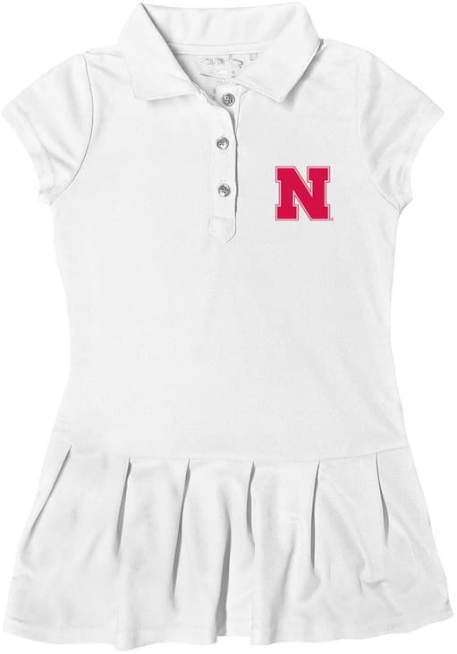 Product Details Product Details Pique polo dressMechanical stretchShort sleeve3 button placketPleated drop waist skirtPerfect for any young sports fan!100% POLYESTERImport, Domestic Officially Licensed Let your unique style show in this Nebraska Cornhuskers Toddler Girls Dress. Featuring a open bottom, this White Cornhuskers Dress is the perfect way to show off your style and pride for the Nebraska Cornhuskers.