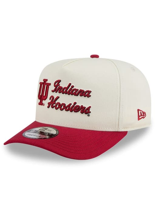 Product Details Product Details New Era Chain Stitch A-Frame 9FIFTYFront chain stitch embroidered team wordmarkFront embroidered team mascot across wordmarkSide New Era flagContrast team color visorSnap closureCOTTONCurved BillHigh CrownStructuredWipe clean with cloth or cleaning kitImported Officially Licensed This Cardinal Hoosiers Adjustable Hat features a front embroidered chain stitch wordmark and team logo with a precurved visor.
