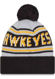 Size Chart for Iowa Hawkeyes New Era Evergreen Cuff Pom Mens Knit Hat - Black