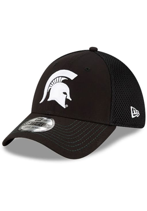 Don't pass on this stylish Michigan State Spartans and White Neo 39THIRTY Flex Hat from Rally House, the ideal item to put your Spartans spirit on display! This Flex Hat stands out for its black and white team logo on a black structured crown and visor with back spacer mesh.