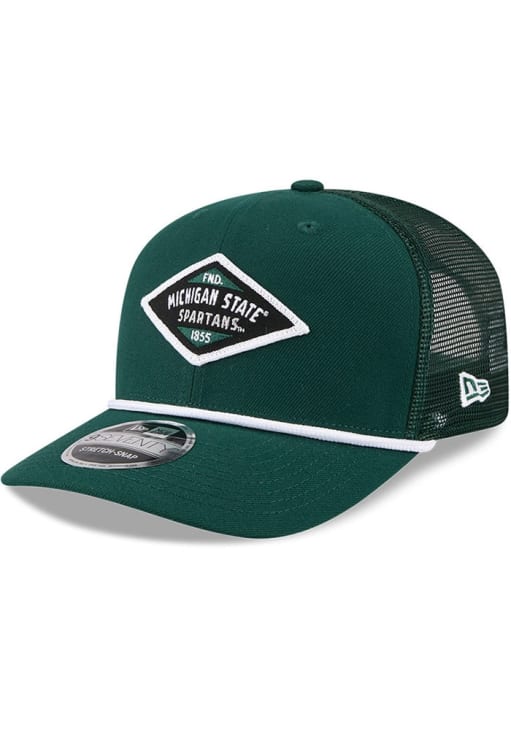 Product Details Product Details New Era Team 9SEVENTY Stretch SnapFront cotton canvas team logo patchRope across visorBack trucker meshSide New Era logoSnap closurePOLYESTERCurved BillLow CrownStructuredWipe clean with cloth or cleaning kitImported Officially Licensed This Green Spartans Adjustable Hat features a front cotton canvas team patch on a structured cotton with a mesh back and rope.