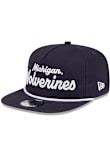 Product Details Product Details New Era Team Text GolferFront raised chain-stitched team nameContrast rope on visorSide team chain-stitched logoBack plastic snap closureCottonFlat BillHigh CrownLightly Structuredwipe clean with cloth or cleaning kit Officially Licensed Make sure everyone knows that you're a diehard Wolverines fan by getting this Michigan Wolverines GOLFER TEAM TEXT Mens Snapback from Rally House! This Snapback Hat is perfect for you, as it features a front embroidered team logo.