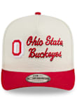 Product Details Product Details New Era Chain Stitch A-Frame 9FIFTYFront chain stitch embroidered team wordmarkFront embroidered team mascot across wordmarkSide New Era flagContrast team color visorSnap closureCOTTONCurved BillHigh CrownStructuredWipe clean with cloth or cleaning kitImported Officially Licensed This White Buckeyes Adjustable Hat features a front embroidered chain stitch wordmark and team logo with a precurved visor.