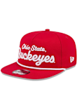 Product Details Product Details New Era Team Text GolferFront raised chain-stitched team nameContrast rope on visorSide team chain-stitched logoBack plastic snap closureCottonFlat BillHigh CrownLightly Structuredwipe clean with cloth or cleaning kit Officially Licensed Make sure everyone knows that you're a diehard Buckeyes fan by getting this Ohio State Buckeyes Team Text Golfer Mens Snapback from Rally House! This Snapback Hat is perfect for you, as it features a front team logo.