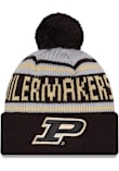 Cold weather won't play a factor in your young fan's Boilermakers fandom, especially with this Purdue Boilermakers Evergreen JR Cuff Pom Youth Knit Hat from Rally House, which features a front embroidered team logo!
