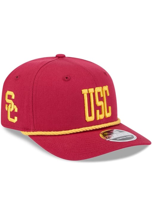 Product Details Product Details New Era Cotton Wordmark 9SEVENTY Stretch SnapFront embroidered team wordmarkTeam color rope on top of visorSide embroidered team logoSide New Era flagBack plastic snap closureCottonCurved BillLow CrownStructuredWipe clean with cloth or cleaning kitImported Officially Licensed This Red Trojans Adjustable Hat features a front embroidered team logo.