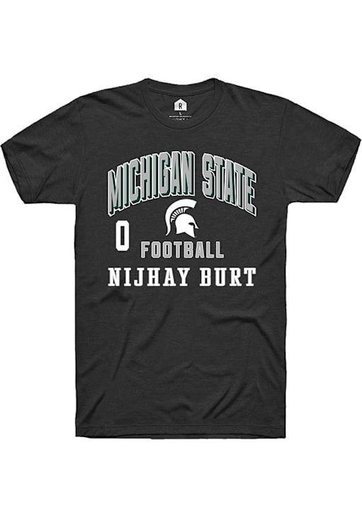 Nijhay Burt Black Michigan State Spartans NIL Arch Logo Short Sleeve T Shirt