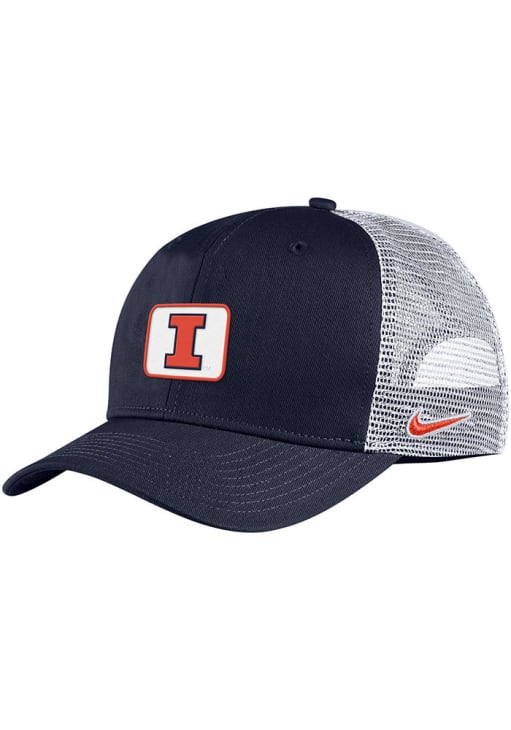 Product Details Product Details Nike C99 TruckerTeam Logo embroidered on twill patchSide Nike logoBreathable dri-fit materialAdjustable ClosureCotton & polyester blend materialCotton/Poly BlendCurved BillLow CrownStructuredWipe clean with cloth or cleaning kitImported Officially Licensed This Navy Blue Fighting Illini Adjustable Hat features a front embroidered team logo.
