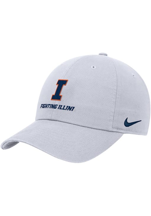 Product Details Product Details Nike - Cotton Club AdjTeam logo on frontTeam color all overNike swoosh on left hand sideAdjustable closureCotton TwillCurved BillHigh CrownLightly StructuredWipe clean with cloth or cleaning kitImported Officially Licensed This White Fighting Illini Adjustable Hat features a front team logo.