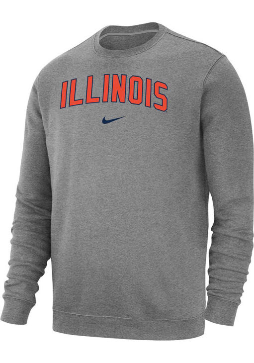 Gear up for the ultimate game day experience with this remarkable Illinois Fighting IlliniMens Grey Club Fleece Arch Name Crew Sweatshirt! Designed with the true fan in mind, this Fighting Illini Long Sleeve Crew Sweatshirt features a screenprint team logo on front chest. Stay warm and comfortable with this Mens Illinois Fighting Illini Crew Sweatshirt.