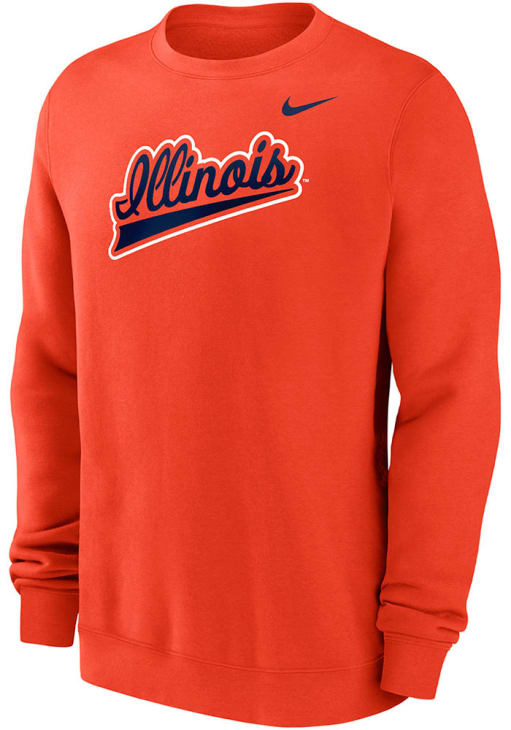 Gear up for the ultimate game day experience with this remarkable Illinois Fighting IlliniMens Orange Script Crew Sweatshirt! Designed with the true fan in mind, this Fighting Illini Long Sleeve Crew Sweatshirt features a screenprint of team graphic on front chest. Stay warm and comfortable with this Mens Illinois Fighting Illini Crew Sweatshirt.