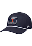 Product Details Product Details Nike Rise Pinch Panel AdjustableFront patch with embroidered team name and logoRope across top of visorSide Nike logoBack plastic snap closureCOTTONCurved BillLow CrownStructuredWipe clean with cloth or cleaning kitImported Officially Licensed This Navy Blue Fighting Illini Adjustable Hat features a team logo patch with rope across top of visor.
