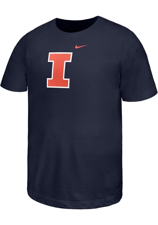 Size Chart for Youth Illinois Fighting Illini Navy Blue Nike Primary Logo Short Sleeve T-Shirt