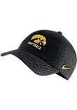 Product Details Product Details Nike H86 Relaxed-Fit Adjustable HatHigh-density embroidery for front logo and SwooshAdjustable strap back closureWashed fabric gives hat a soft, distressed lookAdjustable ClosureCotton materialCottonCurved BillLow CrownUnstructuredWipe clean with cloth or cleaning kitImported Officially Licensed This Black Hawkeyes Adjustable Hat features a team logo on front with sport specific wordmark beneath.