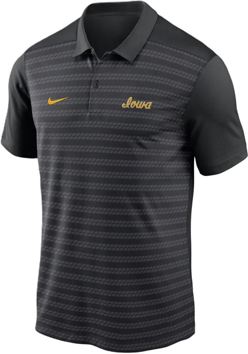 Enhance your professional style with this striking Mens Black Short Sleeve Polo Shirt! Showcase your team pride among colleagues with this exceptional Hawkeyes Black Sideline Victory Short Sleeve Polo. Stand out and make a statement in this Iowa Hawkeyes Short Sleeve Polo, featuring a heat sealed team logo on left chest, swoosh design on left sleeve that adds a touch of distinction to your look.