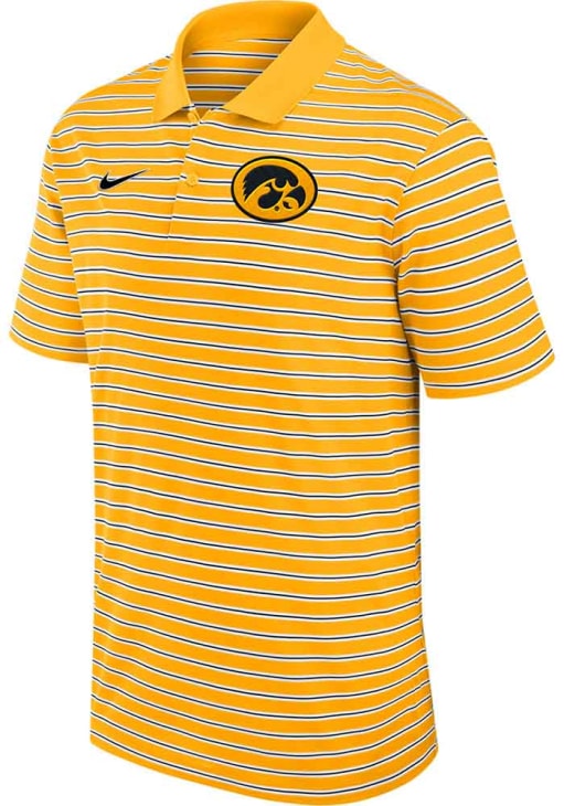 Enhance your professional style with this striking Mens Gold Short Sleeve Polo Shirt! Showcase your team pride among colleagues with this exceptional Hawkeyes Gold Stripe Short Sleeve Polo. Stand out and make a statement in this Iowa Hawkeyes Short Sleeve Polo, featuring a heat seal of team logo on left chest that adds a touch of distinction to your look.
