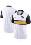 Enhance your professional style with this striking Mens White Short Sleeve Polo Shirt! Showcase your team pride among colleagues with this exceptional Hawkeyes White Vapor Short Sleeve Polo. Stand out and make a statement in this Iowa Hawkeyes Short Sleeve Polo, featuring a heat seal of team logo on left chest that adds a touch of distinction to your look.