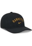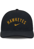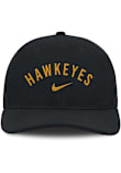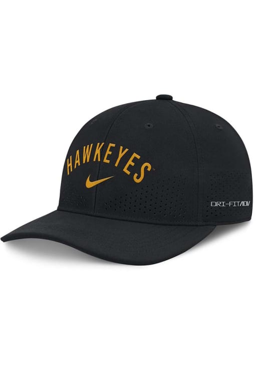 Product Details Product Details Nike Rise Performance Structured AdjustableFront embroidered team wordmarkNike swoosh on front of crownPerforation on front and back panelsBack plastic snap closurePOLYESTERCurved BillLow CrownStructuredWipe clean with cloth or cleaning kitImported Officially Licensed This Black Hawkeyes Adjustable Hat features a front embroidered team logo.