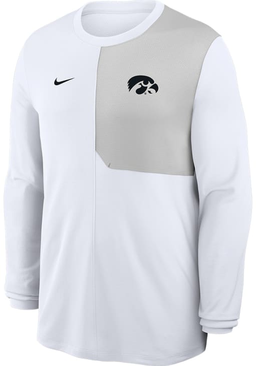 Size Chart for Mens Iowa Hawkeyes White Nike Coach Top Long Sleeve T-Shirt