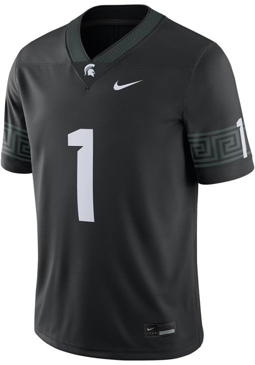 Get in the game with this ultimate Michigan State Spartans Mens Black Alternate Football Jersey. Wear this Jersey to the upcoming tailgate or game for your Spartans. With a player number on front, this Mens Football Jersey is a great way to show your team spirit in style.