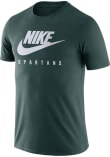 Display your team spirit with this remarkable Michigan State Spartans Nike Green Futura Short Sleeve T Shirt! The MSU Short Sleeve Tee showcases a screen printed Nike logo on center chest with team name printed below that truly sets it apart. Stand out from the crowd and proudly declare your allegiance to the Spartans with this exceptional Green MSU T Shirt. Go Spartans!