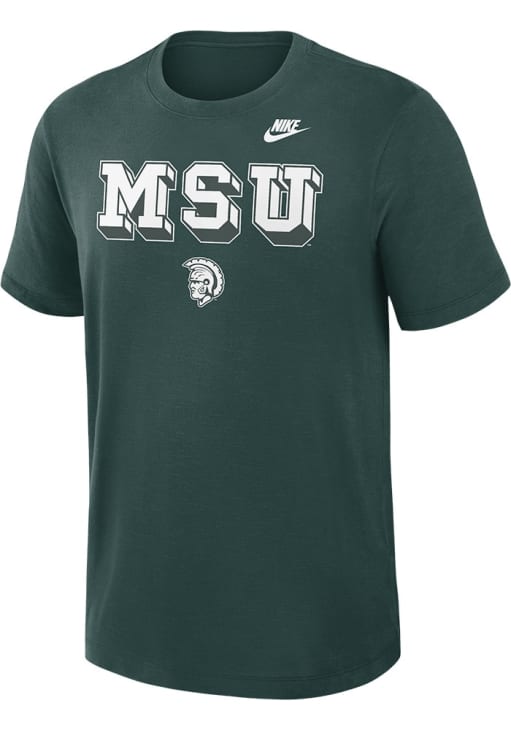 Display your team spirit with this remarkable Michigan State Spartans Green Legacy Short Sleeve T Shirt! The MSU Short Sleeve Tee showcases a wordmark and alt logo on center chest that truly sets it apart. Stand out from the crowd and proudly declare your allegiance to the Spartans with this exceptional Green MSU T Shirt. Go Spartans!