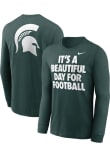 Show your Michigan State Spartans spirit in this MSU Green T Shirt! This MSU Local Cotton Long Sleeve T Shirt makes a great layer for cooler nights cheering on the Spartans. Featuring a screenprint graphic on front chest and back, this Michigan State Spartans Long Sleeve Tee is an essential addition for every fan. Go Spartans!