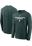 Show your Michigan State Spartans spirit in this MSU Green T Shirt! This MSU Sideline Team Issue Long Sleeve T Shirt makes a great layer for cooler nights cheering on the Spartans. Featuring a screenprinted team name and logo on front chest, this Michigan State Spartans Long Sleeve Tee is an essential addition for every fan. Go Spartans!