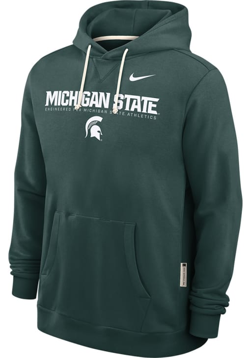 Embrace your Spartans pride and showcase your team spirit with confidence in this Michigan State Spartans Long Sleeve Hoodie! Stay warm and stylish with the MSU Mens Green Dri-Fit Hooded Sweatshirt. Designed with logo and wordmark on center chest, this Spartans Long Sleeve Hoodie is a must-have for dedicated fans.
