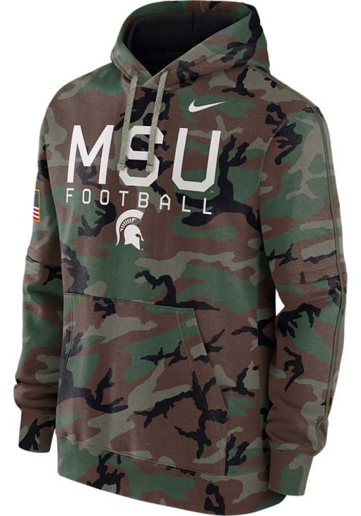 Embrace your Spartans pride and showcase your team spirit with confidence in this Michigan State Spartans Long Sleeve Hoodie! Stay warm and stylish with the MSU Mens Green Military Appreciation Fleece Hooded Sweatshirt. Designed with screen printed team graphic on front chest and American flag on right arm, this Spartans Long Sleeve Hoodie is a must-have for dedicated fans.