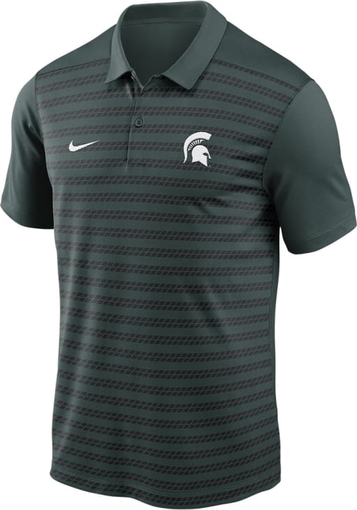 Enhance your professional style with this striking Mens Green Short Sleeve Polo Shirt! Showcase your team pride among colleagues with this exceptional MSU Green Sideline Victory Short Sleeve Polo. Stand out and make a statement in this Michigan State Spartans Short Sleeve Polo, featuring a heat sealed team logo on left chest, swoosh design on left sleeve that adds a touch of distinction to your look.