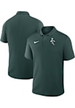 Enhance your professional style with this striking Mens Green Short Sleeve Polo Shirt! Showcase your team pride among colleagues with this exceptional MSU Green Football Sparty Playing Football Short Sleeve Polo. Stand out and make a statement in this Michigan State Spartans Short Sleeve Polo, featuring a team logo embroidered on left chest that adds a touch of distinction to your look.