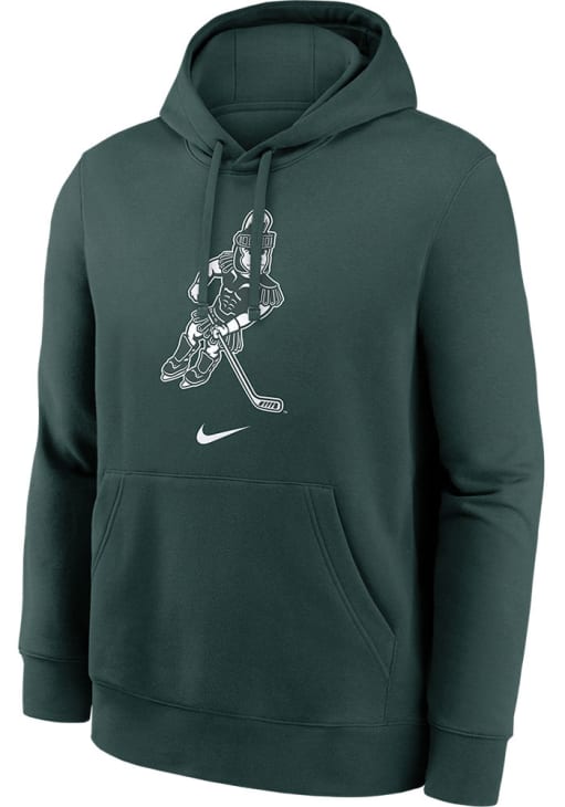 Embrace your Spartans pride and showcase your team spirit with confidence in this Michigan State Spartans Long Sleeve Hoodie! Stay warm and stylish with the MSU Mens Green Sparty Playing Hockey Hooded Sweatshirt. Designed with screen print graphic on front, this Spartans Long Sleeve Hoodie is a must-have for dedicated fans.