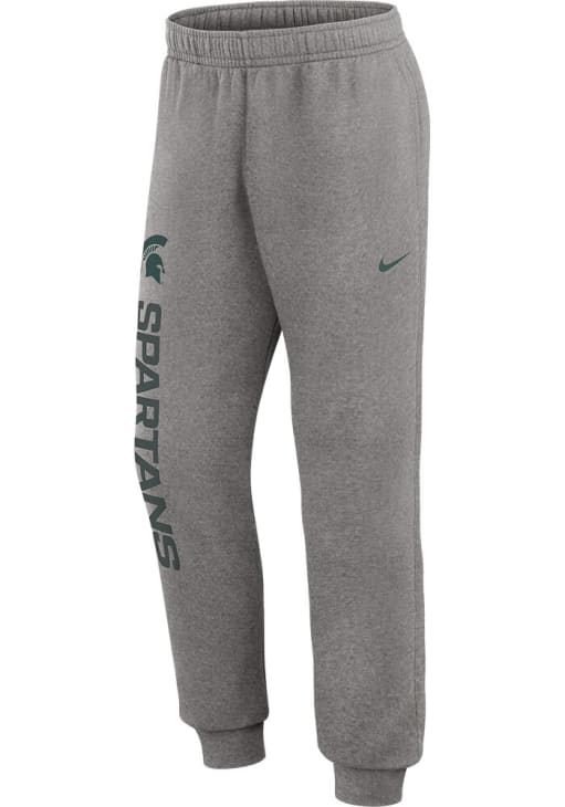 Cozy up in these Michigan State Spartans Mens Grey Club Fleece Sweatpants! Whether you're lounging at home or cheering at the game, these MSU Spartans Sweats are a great way to show your Spartans support in comfort. These Michigan State Spartans Sweatpants feature a logo and wordmark on right leg.