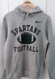 Embrace your Spartans pride and showcase your team spirit with confidence in this Michigan State Spartans Long Sleeve Hoodie! Stay warm and stylish with the MSU Mens Grey Club Football Hooded Sweatshirt. Designed with screen print of Michigan State Spartans Football on front chest, this Spartans Long Sleeve Hoodie is a must-have for dedicated fans.