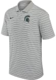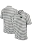 Enhance your professional style with this striking Mens Grey Short Sleeve Polo Shirt! Showcase your team pride among colleagues with this exceptional MSU Grey Stripe Short Sleeve Polo. Stand out and make a statement in this Michigan State Spartans Short Sleeve Polo, featuring a heat seal of team logo on left chest that adds a touch of distinction to your look.