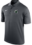Enhance your professional style with this striking Mens Anthracite Short Sleeve Polo Shirt! Showcase your team pride among colleagues with this exceptional MSU Anthracite Varsity Short Sleeve Polo. Stand out and make a statement in this Michigan State Spartans Short Sleeve Polo, featuring a heat seal of primary team logo on upper left chest that adds a touch of distinction to your look.