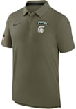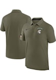 Enhance your professional style with this striking Mens Olive Short Sleeve Polo Shirt! Showcase your team pride among colleagues with this exceptional MSU Olive Military Appreciation Tour Short Sleeve Polo. Stand out and make a statement in this Michigan State Spartans Short Sleeve Polo, featuring a embroidered team name and logo on left chest and American flag on right arm that adds a touch of distinction to your look.