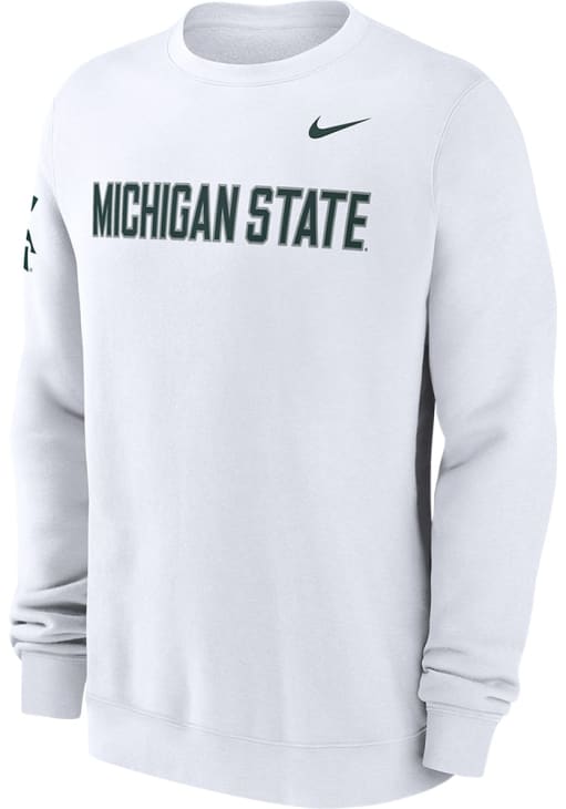 Gear up for the ultimate game day experience with this remarkable Michigan State SpartansMens White Club Fleece Crew Sweatshirt! Designed with the true fan in mind, this Spartans Long Sleeve Crew Sweatshirt features a wordmark on front chest and logo on right sleeve. Stay warm and comfortable with this Mens MSU Spartans Crew Sweatshirt.