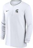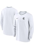 Embrace the warmth and showcase your Spartans pride with our Michigan State Spartans Long Sleeve Qtr Zip Pullover. This Mens White Sideline Coach Long Sleeve Pullover offers a heat seal of team logo on left chest for the perfect combination of comfort and style. Elevate your everyday look with this must-have Michigan State Spartans Long Sleeve Qtr Zip Pullover.