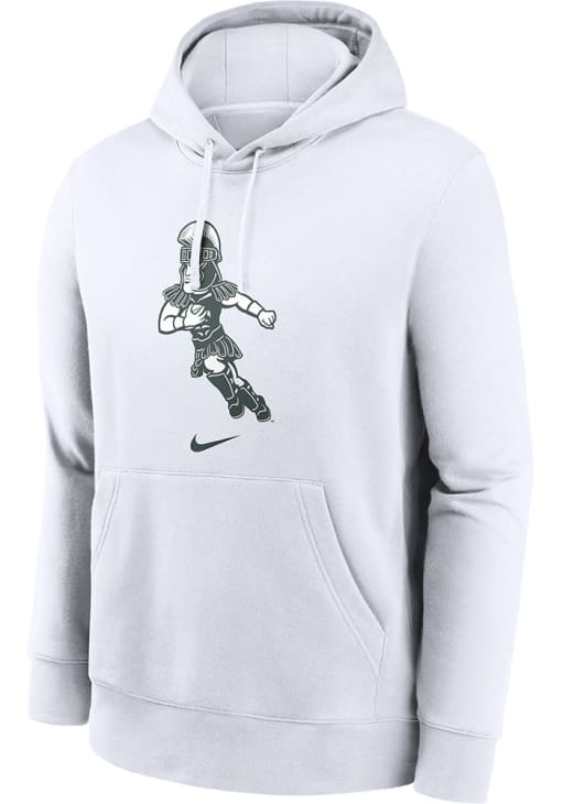 Embrace your Spartans pride and showcase your team spirit with confidence in this Michigan State Spartans Long Sleeve Hoodie! Stay warm and stylish with the MSU Mens White Football Sparty Playing Football Hooded Sweatshirt. Designed with screen print graphic on front, this Spartans Long Sleeve Hoodie is a must-have for dedicated fans.