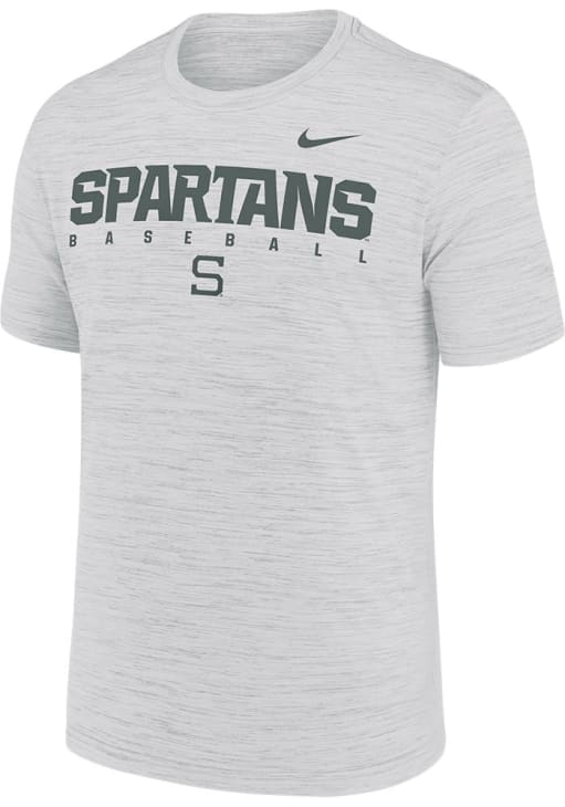 Stay cool and display your Michigan State Spartans spirit in this White DriFit Velocity Baseball T Shirt. This Short Sleeve is the perfect Tee for working out, heading to class, or cheering on the Spartans. Showcasing a screen print team graphic on front chest, there's no mistaking your Michigan State Spartans pride in this Spartans DriFit Velocity Baseball T Shirt!